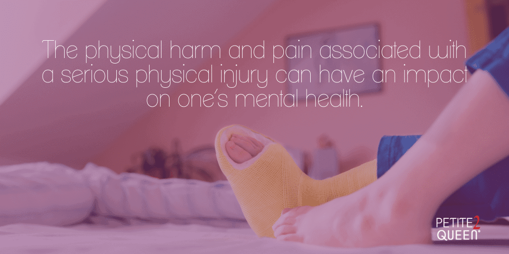 The physical harm and pain associated with a serious physical injury can have an impact on one’s mental health. The emotional trauma from an abrupt and severe injury, resulting from events such as a car accident, assault, or an accidental fall, can increase the risk of a person to develop mental disorders such as anxiety disorder, post-traumatic stress disorder (PTSD), and depression.